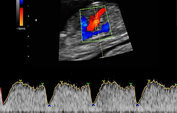 La ecografía Doppler es un tipo de ecografía que nos permite valorar la circulación sanguínea fetal mediante la visualización y medición del flujo sanguíneo de ciertas arterias y venas fetales ampliamente conocidas. Ademas también es útil para valorar la circulación al útero.